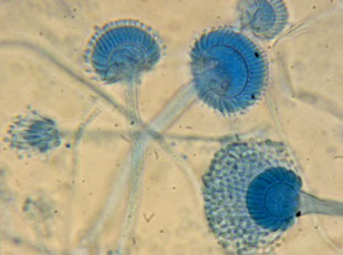 Ein Feuchtigkeitsschaden führt selten allein zu einem Schimmelpilzschaden. Meist finden sich Vergesellschaftungen mit Bakterien z.B. aus der Ordnung der Actinomyceten. Diese können in der Regel lichtmikroskopisch nicht weiter klassifiziert werden, einige Gattungen wie z.B. Nocardia werden jedoch nach der Biostoffverordnung auf Grund einer möglichen Gesundheitsgefährdung der Schutzstufe II zugeordnet. Auch aus diesem Grund sollte jedem Versuch des mechanischen Entfernens von Befallsstellen und belastetem Materials eine gründliche Desinfektion vorausgehen. ![]() DomoLytik Institut für Gebäude- und Innenraumanalytik GmbH
